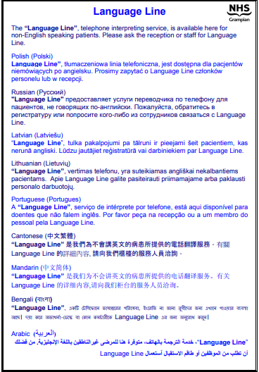 A patient who wishes to use a friend, family member or carer or anyone as an interpreter, NHS Grampian's position remains that it is important to use a professionally trained interpreter because of the duty to ensure that interpreting is accurate, clear and consistent. If the patient will continue to insist on using independent services or declines the use of NHS Grampian interpreter services, it must be documented in the patient's healthcare record and signed by the patient to say that this was their personal request. Our staff will explain to our patients why we need to use professional interpreters. We would also expect that anyone who supports our patients in communication holds a professional qualification, registered with appropriate governing body, Disclosure/PVG checked, has public liability insurance and have an agreed code of conduct. Interpretation services in the healthcare setting is free to patients.